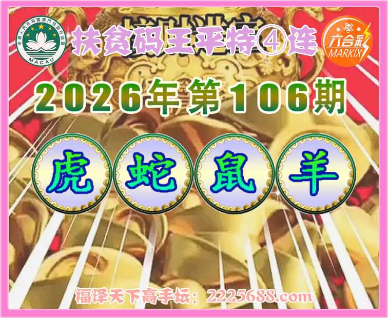 106期:『扶贫码王』 🥫平特④连🥫【虎蛇鼠羊】开:00准